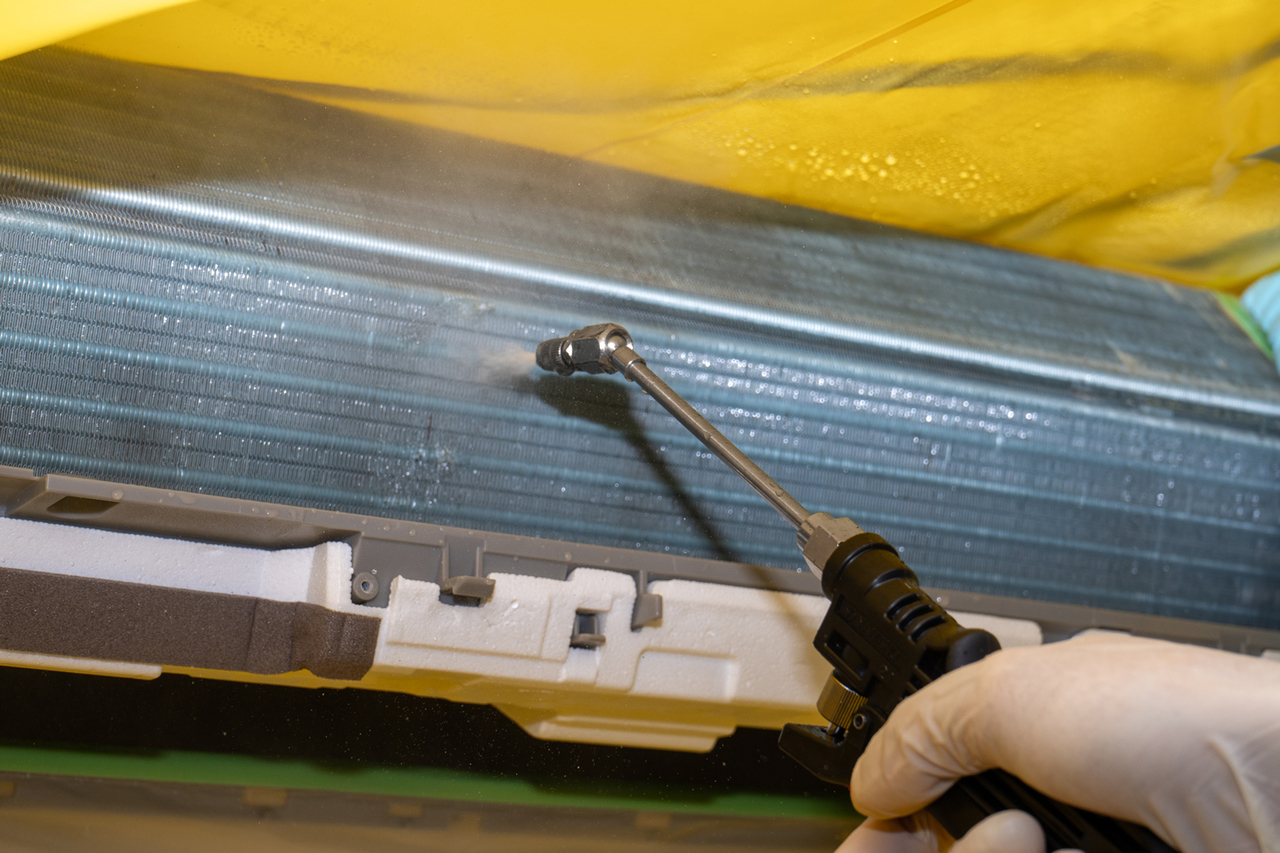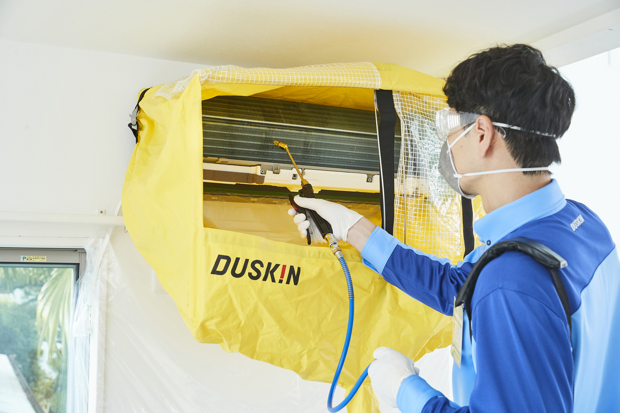 エアコンのフィルターをこまめにおそうじしているのに、イヤなニオイがしたり、効きが悪いと感じるのは、エアコン内部の汚れが原因です。ダスキンなら、ご家庭では触ることのできないエアコン内部まで分解・洗浄。イヤなニオイのもととなるカビやホコリを徹底的に除去します。